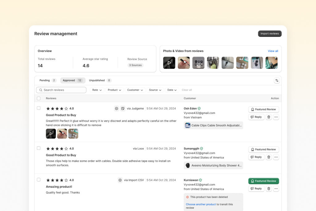 Our comprehensive suite of review management tools caters to all Shopify merchants