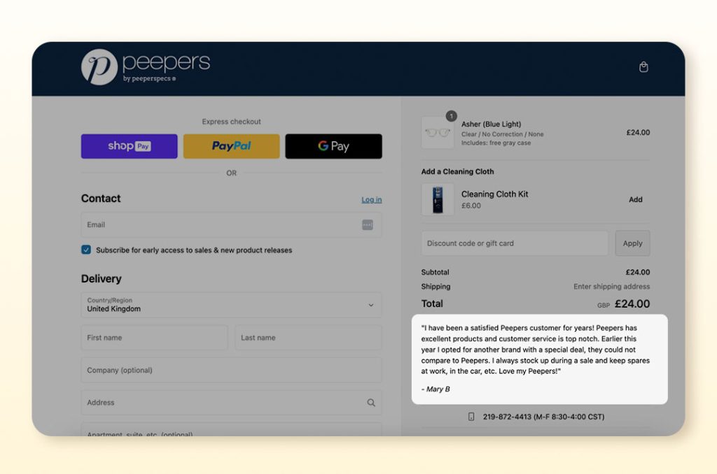 Why does this work? Because shoppers often second-guess themselves at the very last step. Showing positive reviews from real customers right at checkout helps silence doubts and keeps them moving forward.