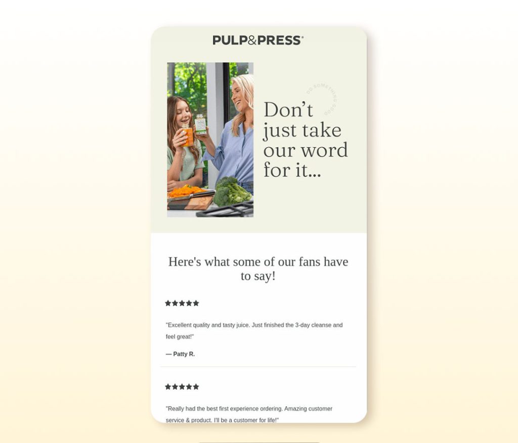 Reviews don’t just live on your store. Leading brands reuse them in email campaigns to increase open rates and clicks.