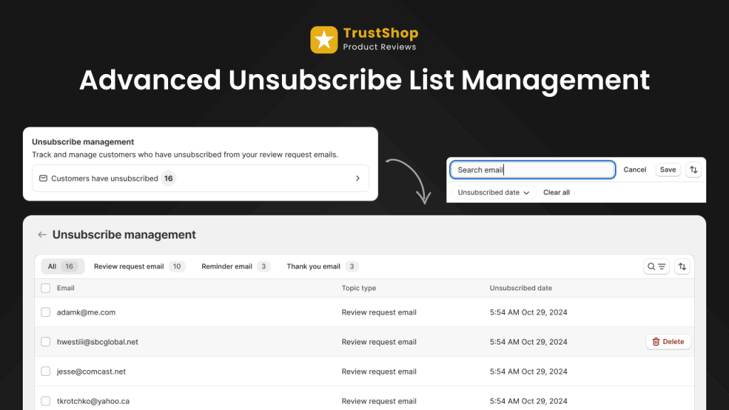 - Advanced Unsubscribe List Management Keep your customer communication clean and effective with our new unsubscribe management system. Track, analyze, and maintain your customer lists with precision.